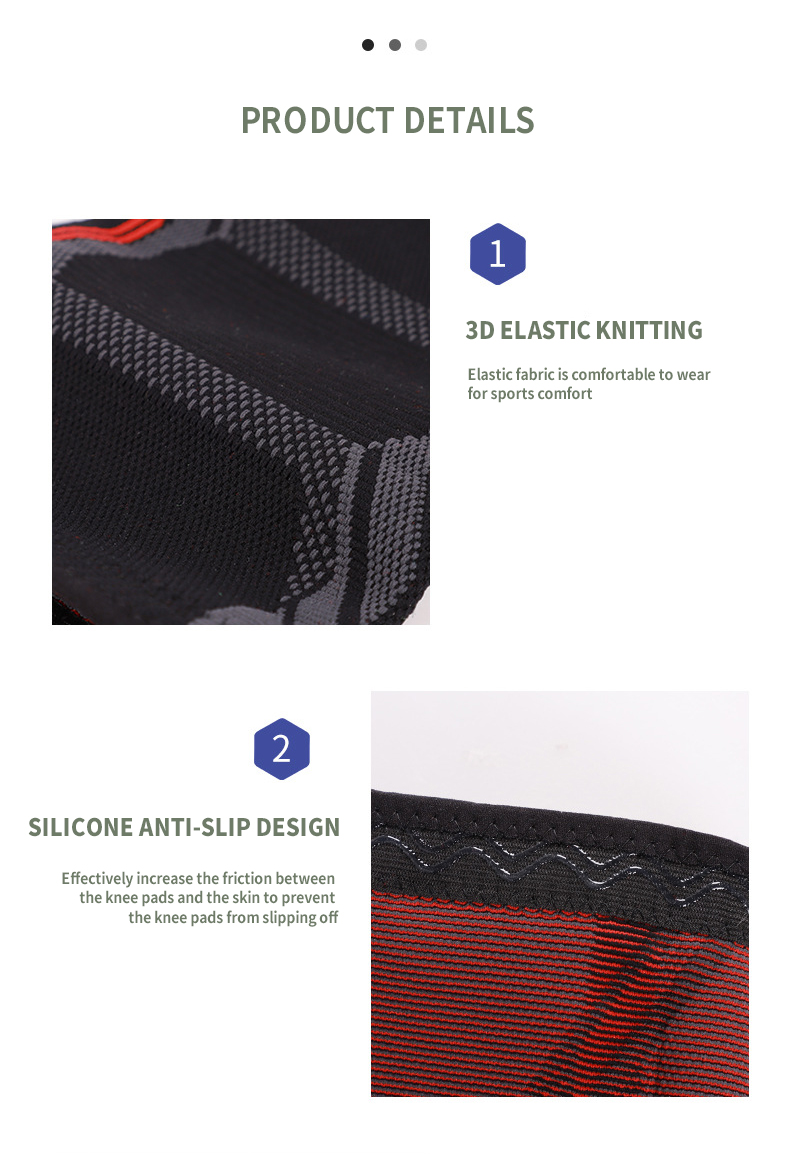 يمكن للتصميم المريح أن يتكيف بشكل أفضل مع مفاصلك ؛ مع مرونة قوية ، يحسن تصميم الحياكة الخاصة هذا الدورة الدموية ويعطي ضغطًا أفضل على الركبتين والعضلات. مع هلام السيليكون المزدوج لمنع دعامة الركبة من الانزلاق أو المتداول أثناء الأنشطة البدنية ؛ سريع في امتصاص العرق ويحافظ على جفاف ركبتك وخالية من الرائحة. غالبًا ما تكون هذه المواد قابلة للتنفس ، مما يمنع ارتفاع درجة الحرارة والسماح بالارتداء الممتد دون إزعاج.